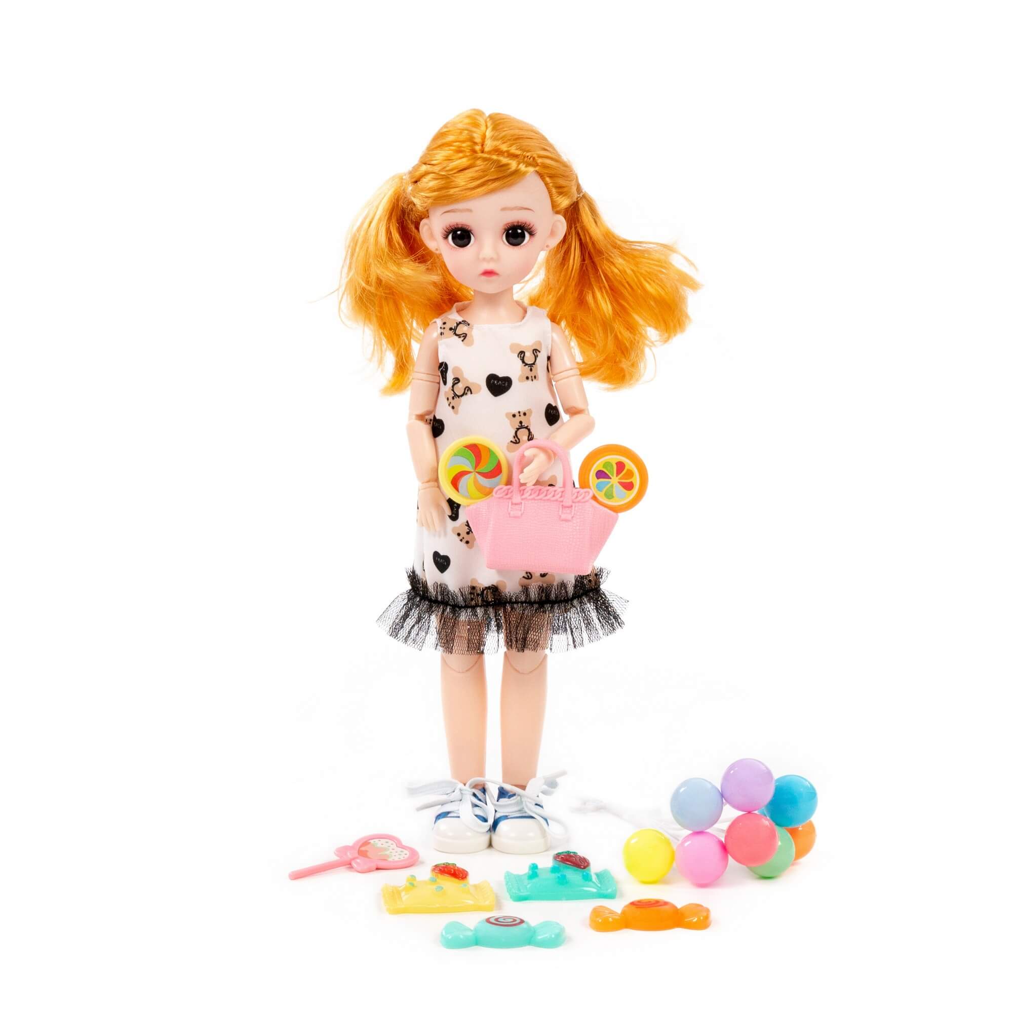 В наборе с куклой представлены игрушечная сумка, воздушные шарики для идеальной вечеринки, много сладостей, чтобы угостить всех кукол.