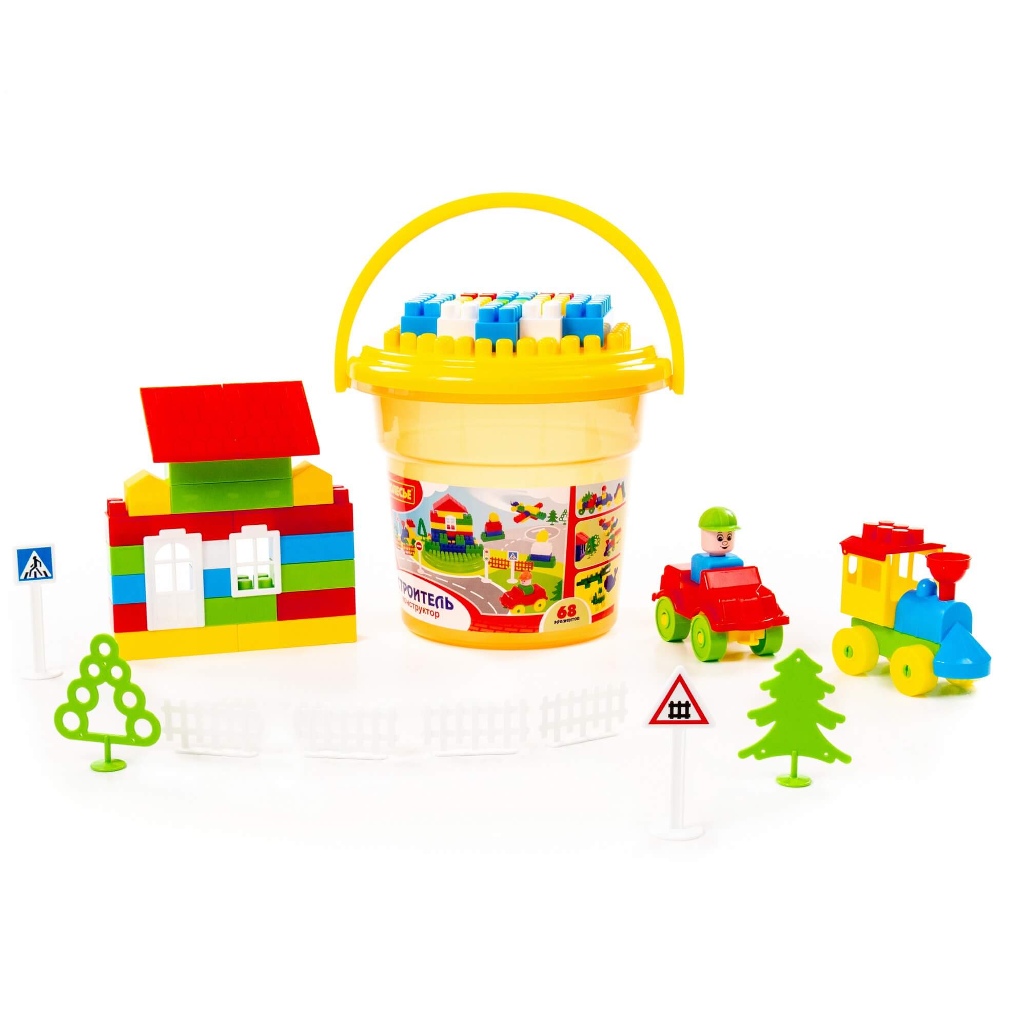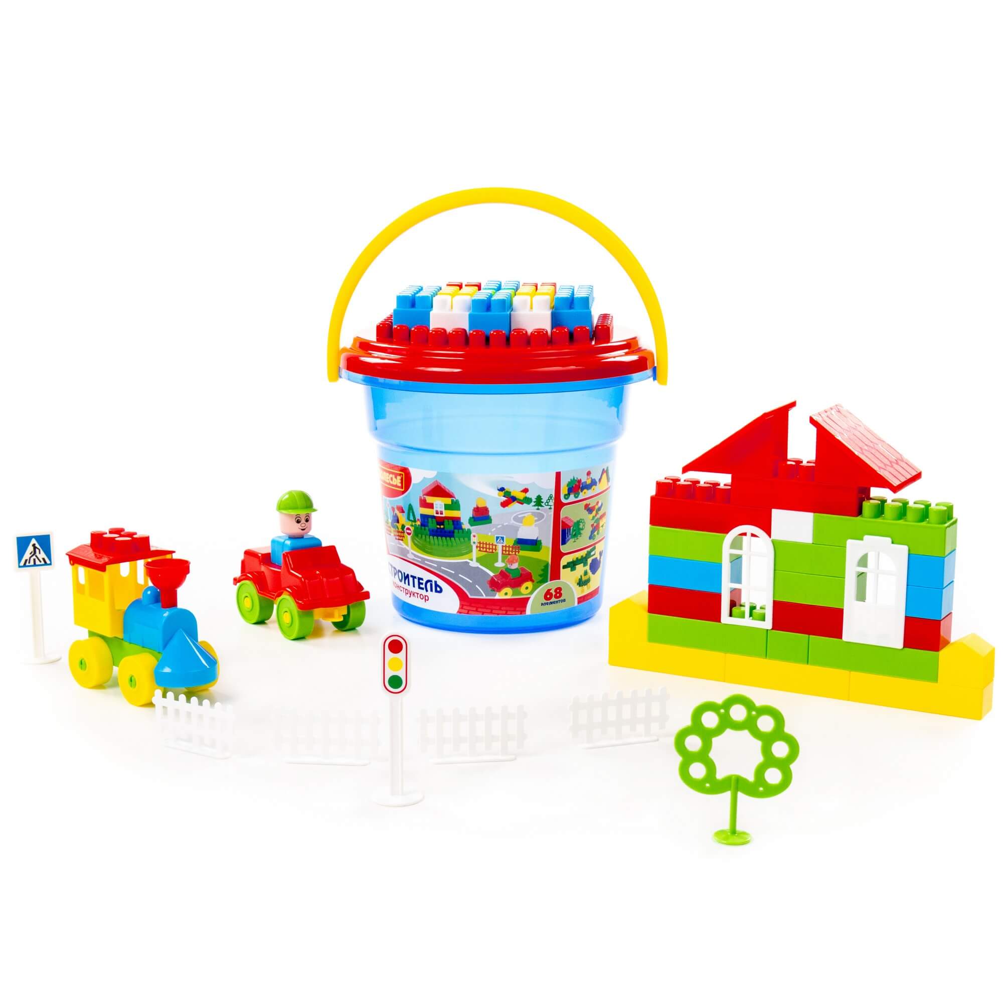 Конструктор "Строитель" (68 элем. в ведре "Макси" с крышкой) арт.37190