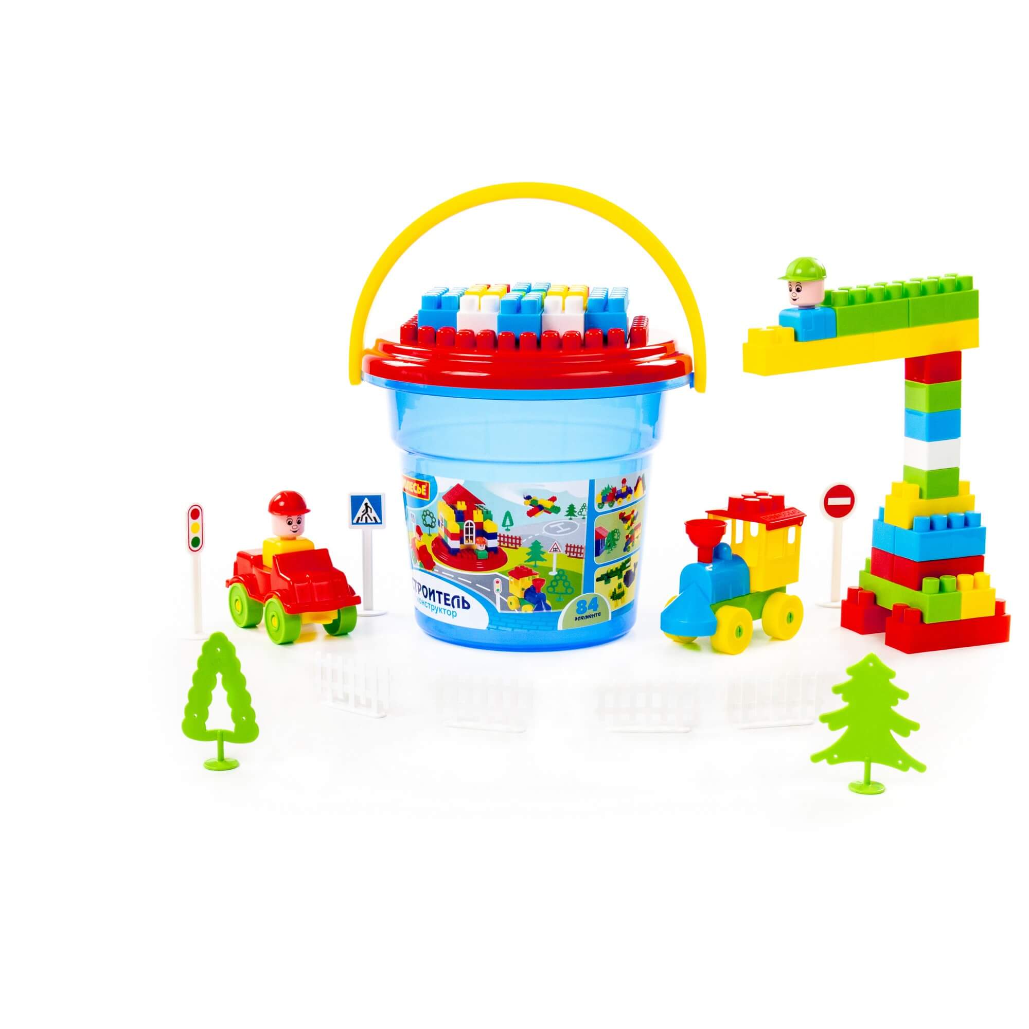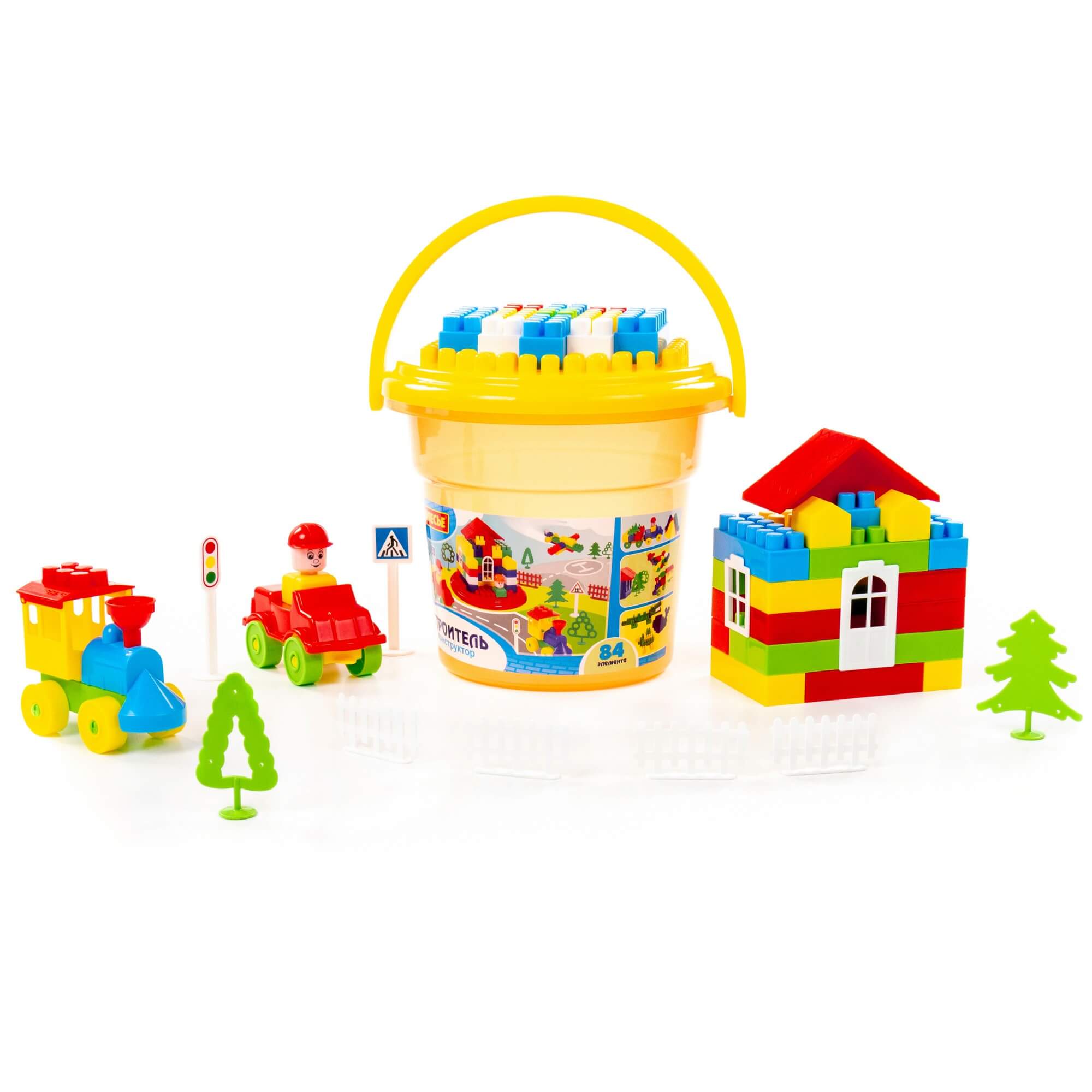 Конструктор "Строитель" (84 элем. в ведре "Макси" с крышкой) арт. 37213 Полесье