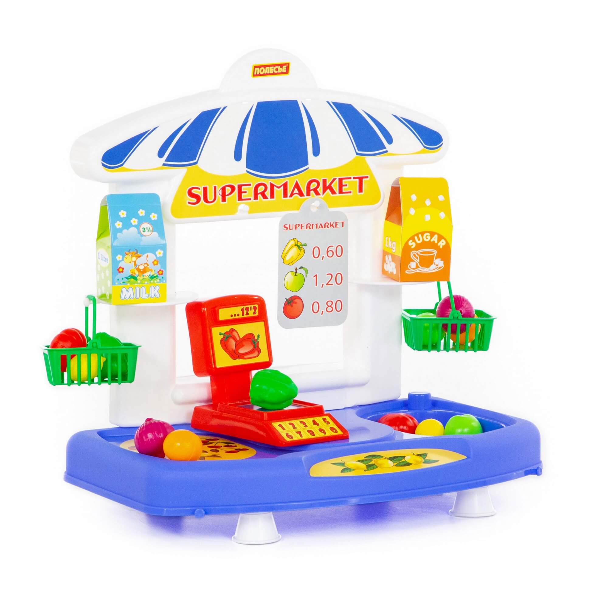Настольный набор "Супермаркет" от фабрики Полесье представляет собой маленький прилавок с весами и корзинками для покупок.Набор понравится и мальчикам и девочкам, ведь играть в магазин любят все дети.